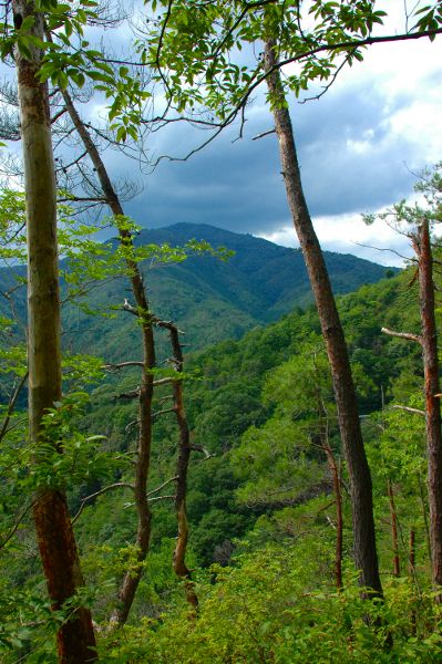 I went once again toward Atago mountain. A customer asked me about trails around Kyoto. I knew there was one passing there, that goes far away south and north of Kyoto. But I didn't remember the name, so couldn't find information on Internet. Thus I decided to go there to read the name. There are actually two trails. One is Kyouto-isshuu-toreiru (京都一周トレイル), 70km long around Kyoto, detailed information are available HERE. The other one, which has common section with the first one is Toukai-shizen-hodou (東海自然歩道), linking Kyoto to Tokyo through 22 hiking courses, detailed information HERE (japanese only, sorry).